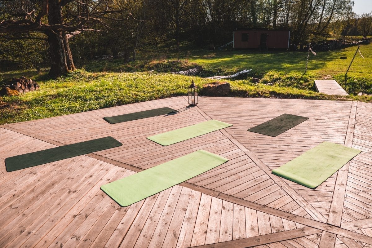 Yoga på yogaplattan vid vattnet…